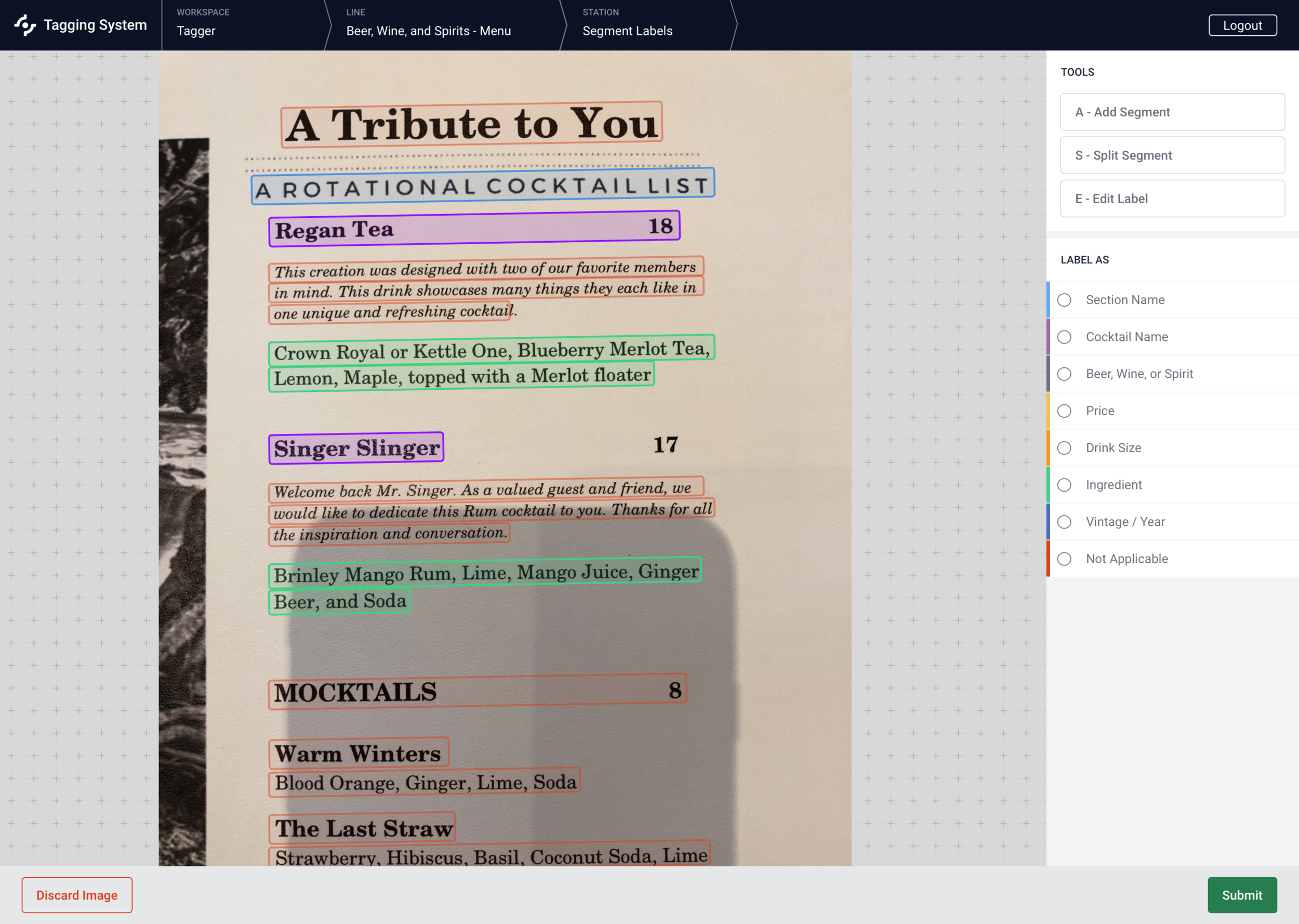 GoSpotCheck’s image recognition feature is focused on identifying products in coolers and shelves at convenience stores. However, there is a high demand for image recognition within the beer, wine, and spirits space, specifically alcohol menus. Beer, wine, and spirits suppliers and distributors want to use image recognition to identify their product names, price, and positions on menus. This means we needed to train a model and build a new training system that allows for audits of menus.